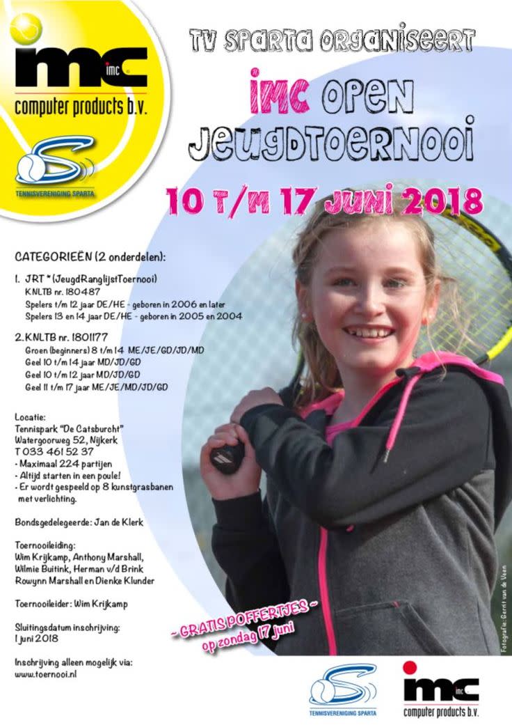 De competitie is nog in volle gang, maar de toernooien staan ook alweer voor de deur! De inschrijving van het IMC Open Jeugdtoernooi en JRT* 2018 bij TV Sparta staat open en de inschrijvingen gaan hard!