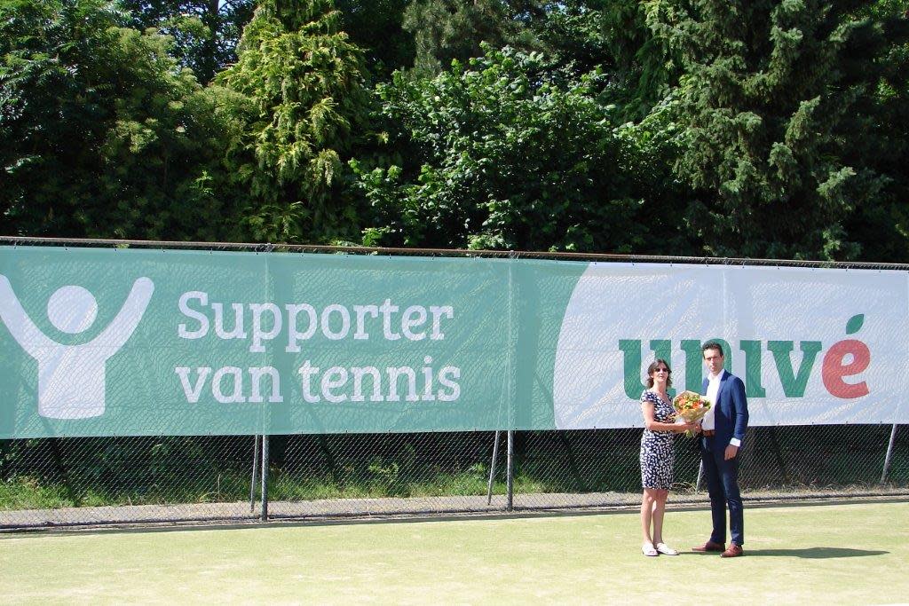Univé Dichtbij, vestiging Nijkerk, is weer zichtbaar terug op ons mooie tennispark. Afgelopen week is op de vertrouwde Pijpers Bronbemalingen baan 4 een nieuw winddoek geplaatst waarmee TV Sparta de primeur heeft met het nieuwe logo van Univé. We hopen weer op een langdurige en goede samenwerking!